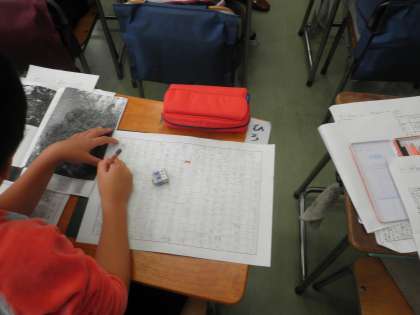 調べたことをもとに、時間、場所、大きさ、様子を入れて、