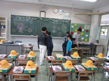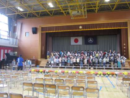 明日は烏山小学校の入学式です。1年生が入学してきます。6年生は、1年生の教室や体育館で、入学式の準備を心をこめて行いました。2年生は、入学式で披露する「歓迎の会」の仕上げをしました。きっと、明日は、素敵な入学式を迎えられることでしょう。
