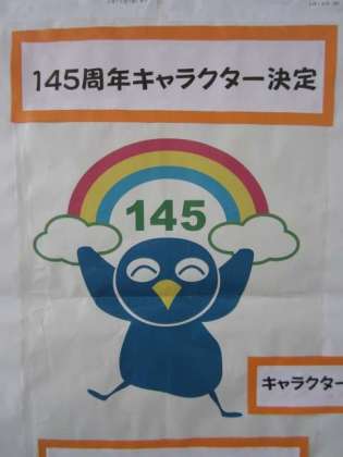 本校は、今年度、開校145周年を迎えます。子供たちが応募したキャラクターの中から、145周年のキャラクターが決まりました。今は、このキャラクターの名前を募集しています。どんなネーミングなるか楽しみです。