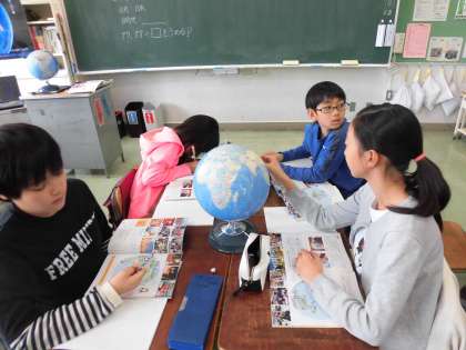 初めて地球儀に触る子も多く、夢中になっていろいろな国を探していました。