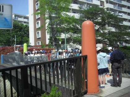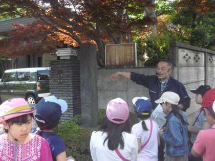 この日は、6年1組が古地名めぐりをしました。社会科の学習の一環として行っているこの活動は、毎年「上祖師谷郷土研究会」の方々のご協力で行っているものです。