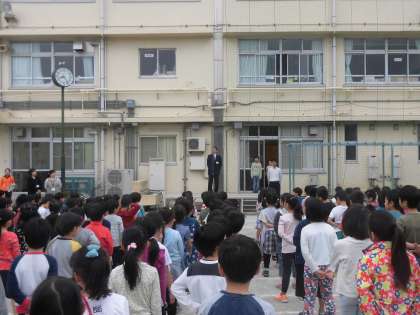 盛りだくさんな全校朝会でしたが、1年生は静かにしっかりとお話を聞くことができました。とても立派です。