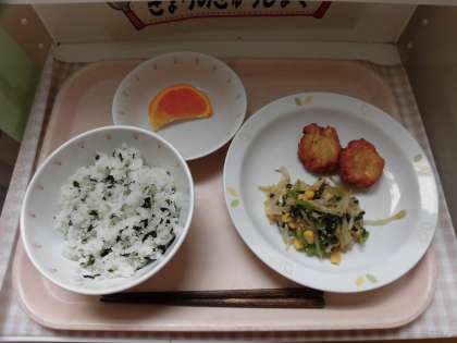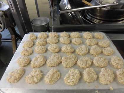 ☆豆腐ナゲットは給食室で1つ1つ手作りしました。生地がやわらかいので、とても手間がかかります。みんなよく食べていました。