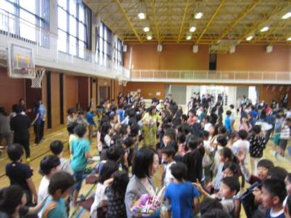 昨年度末(平成30年3月31日)に烏山小学校を去られた先生が来て、離任式を行いました。これまでお世話になったことを思い出しながら、「ありがとうございました」の気持ちを伝えました。先生方からは、子どもたちに温かいメッセージが送られました。心温まるとてもよい式でした。
