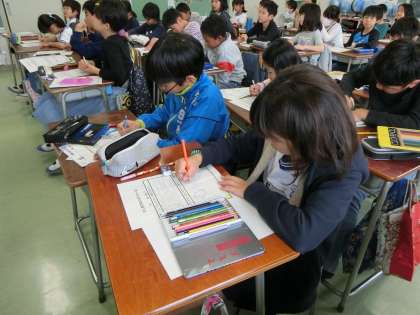 毎年5年生は世田谷歯科医師会から依頼され、むし歯予防のポスターを作成しています。今年も図工の学習の一環として、子どもたちはポスターを描くことになりました。