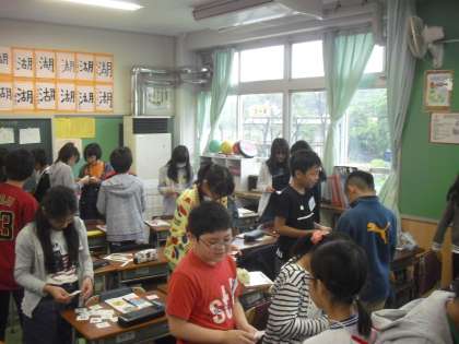 Do you have ○○?の表現を使ってカードの交換をし合う活動を通して、子どもたちは英語表現に親しみながら学びを深めています。