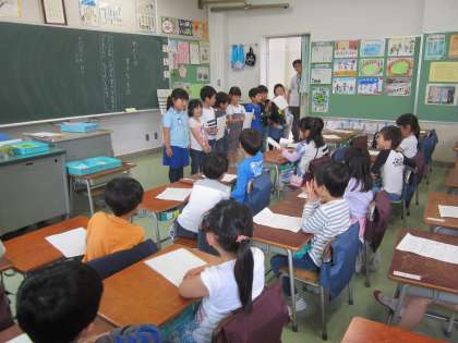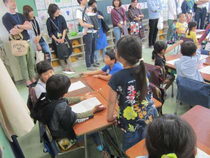 まずはペアで練習。その後、グループの友達に一番すきなものを紹介しました。グループに紹介できたので、最後はみんなに紹介です。たくさんの保護者の方の前でしたが、はずかしがらずにしっかりと理由も言うことができました。