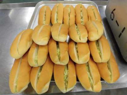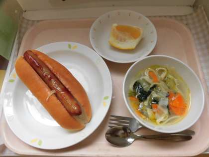 ☆セルフウィンナーサンドのウィンナーは豚肉100%、添加物無使用ですので安心して食べられます。キャベツソテーをはさんだパンを自分でウィンナーを入れて、美味しくいただきます。