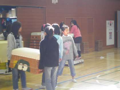 土曜日に終わった学芸会の片づけを5年生がしました。