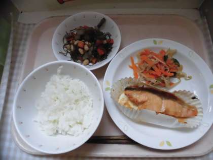 ☆今日の献立は『刻みこんぶの五目煮』です。たくさんの大豆が入っています。大豆は「畑の肉」と言われていて、良質なたんぱく質を多く含んでいます。