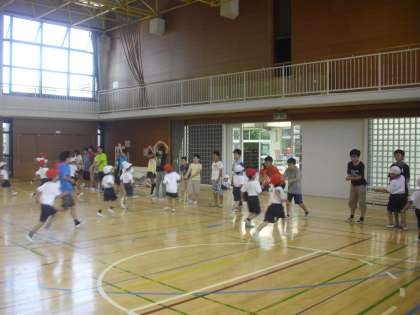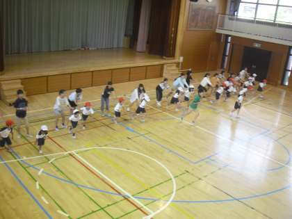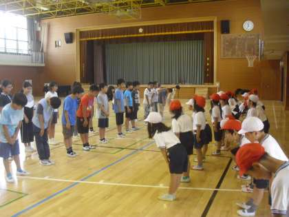 この日は、1年生が新体力テストの種目「20mシャトルラン」の計測に取り組みました。初めての経験となる1年生のために、6年生がお手伝いをしました。ペースメーカーとして1年生をリードする子、一人ひとりの記録を取りながら励ましの声かけをする子。6年生は役割を分担して1年生がよりよい記録を出せるように見守っていました。