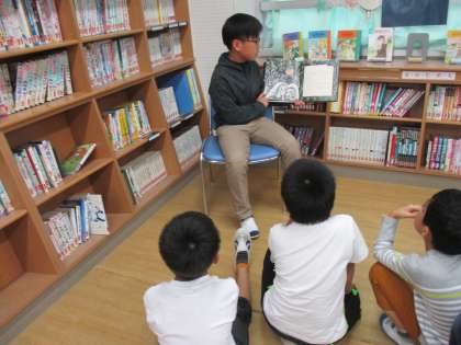 本日18日(月)から29日(金)までの2週間は、読書旬間です。朝会では、校長先生から本についてのお話がありました。また、よく知っている「イソップ童話」を読んでいただき、子どもたちは校長先生の読んでくださるお話に聞き入っていました。また、図書委員会の委員長さんから、読書旬間に行われる内容についての発表がありました。さっそく本日の中休みには、図書委員会の人による読み聞かせが、図書館で行われました。来週の読み聞かせには、もっとたくさんの人に図書館に来てもらいたいので、呼びかけのポスターを作りました。