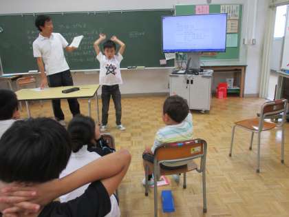 給食の時間は、4年生との交流給食の日でした。それぞれの班に4年生を招待し、一緒に楽しく食べました。だんだんおもてなしも上手になり、楽しくお話をしていました。自己紹介の後、「しりとり」をしながら、「私も同じ物が好き。」と話が盛り上がってきているところもありました。