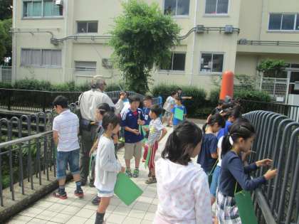 本日の1・2校時に、「みどりの出前講座」をしていただきました。仙川に生えている草や花の観察をしたり、黒橋を境に上流と下流との違いを見つけたりしました。また、東京都のレッドデータブックでは、区部の絶滅種となっているサジオモダカという植物も観察することができました。ちなみに、宮前橋と黒橋の間に咲いています。