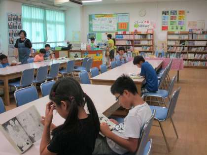 読書旬間2日目の本日、本の好きの子どもたちが図書館で静かに本を読んでいました。図書館の入り口には、大きく「読書旬間」の掲示があったり、館内には、梅雨のこの季節にあわせて「あめをたのしむ」というタイトルに合わせて、本が集められたりしています。この機会に、本を手にしてみて、お気に入りの本を見つけてください。司書の先生に「こんな本は、どこにありますか。」と相談してみるのも一つの方法です。きっとお気に入りの1冊が見つかると思いますよ。