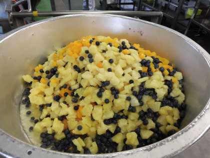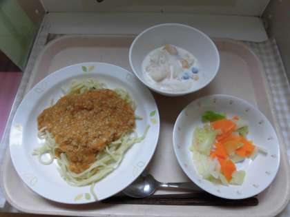 ☆今日のデザートは『フルーツヨーグルト』ヨーグルトの中には旬のブルーベリーがたくさん入っています。愛媛県で収穫したブルーベリーは眼の健康に良いアントシアニンが多くふくまれていて、みんな良く食べていましたよ。
