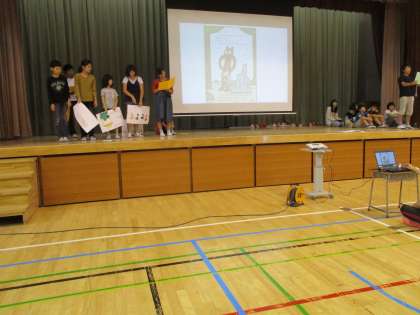 また、図書委員会の人たちは、明日の図書委員会集会に向けてリハーサルを行いました。全校のみなさんに本を読んでみたいなという気持ちになるような発表にしたいと、みんなはりきって練習をしていました。明日の集会を楽しみにしていてください。