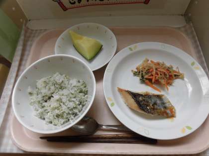 ☆今日の献立は『鰆の梅肉焼き』です。鰆の上に梅肉ソースをかけました。酸味はあまり感じず、梅の香りを楽しむことができるメニューの1つです。