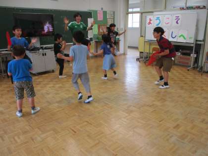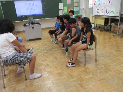 5校時の音楽の時間には、来週から高学年の人たちが行く、河口湖移動教室で歌う歌やダンスの練習をしました。2つのグループに分かれて歌う歌「おおきな うた」や、軽快なリズムにのって「エビカニ ミクス」を練習しました。