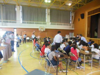 烏山小にて、合同研修会・合同学習確認会議を行いました。5校時、体育館にて、6年1組の児童を対象に明星大学教育学部教育学科特任教授 大原龍一先生による特別の教科「道徳」の授業がありました。「かぜのでんわ」という絵本をもとに、「よりよく生きる」ということについて子どもたちは深く考えていました。その授業を上祖師谷中学校・烏山小学校の教員が参観し、「考える道徳」の授業の進め方について研修をしました。後半は、各教科部会に分かれ、合同学習確認会議を行いました。4月に行われた合同学習確認調査をもとに分析をし、温知学舎としての課題や指導の重点を確認しました。この課題を日々の授業に生かすとともに、11月・2月に行われる合同研修会での研究授業に反映させていきます。今後も、上祖師谷中学校と烏山小学校は連携して、教育活動を推進していきます。