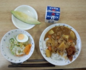17時30分、夕食の時間になりました。子どもたちの大好きなカレーライスです。お腹いっぱい食べました。