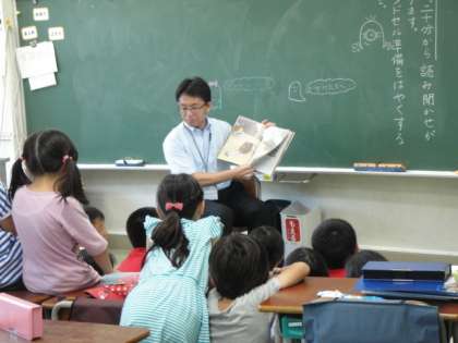 2週間続いた読書旬間も本日で終了となりました。朝、教員による読み聞かせを行いました。担任でない先生ということで、子どもたちは、わくわくしながら聞いていました。先生方も、ICTを活用して本を大きく拡大して写しながら読んだり、内容に応じて声のトーンを変えたりしながらいろいろ工夫して、本の読み聞かせをしでいました。