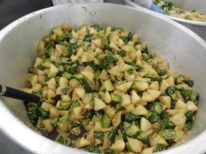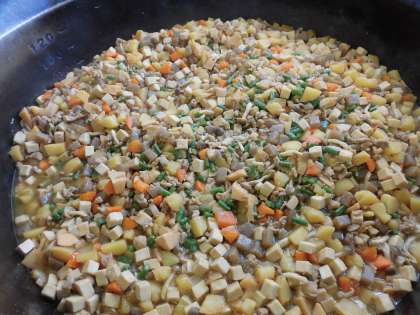 ☆今日の献立は『いりどり煮』です。給食室の大釜でお肉と沢山の野菜を煮込みました。