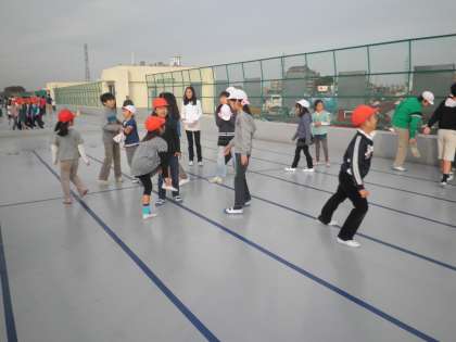 兄弟遊び集会は、校庭だけでなく、屋上、体育館も使って