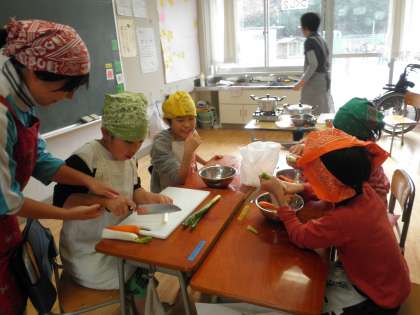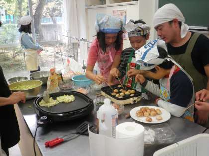 でも、包丁の使い方を学び、タコ焼き機でタコ焼きを作り、餃子の皮も自分たちで作っている様子を見ると、本当に真剣そのものです。