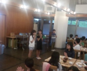 17時45分、夕食の時間になりました。メニューの中の群馬県産はこんにゃくとりんごジュースです。子どもたちはりんごジュースをよく飲んでいました。