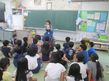 2冊目は、「オレ、カエルやめるや」を読んでいただきました。子どもたちから笑いが起き心が楽しくなるような本でした。