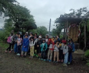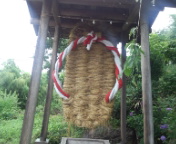11時20分、大わらじの前で集合写真を撮りました。川場村中野地区の入口にあり、中野地区に邪鬼が入らないようするお守りです。毎年村の人が集まって作っています。