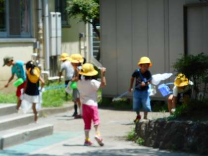 あまりの暑さのためか、虫たちもお休み気味。多くは捕まえられませんでしたが、短い時間で、コオロギ・バッタ・シジミチョウ・テントウムシ・カマキリ・カミキリムシ等々を見付けることができました。「もっと捕まえたかった。」と子どもたちは暑さに負けない元気さで話をしていました。夏休みに、ぜひ再挑戦してみては・・・?