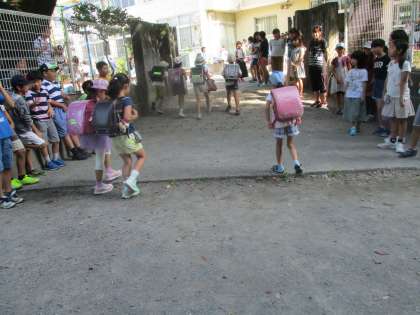 7月のあいさつ週間が終わりました。14日は、1年生と5年生が当番で、正門と東門に立って「おはようございます。」と声をかけました。1年生は、おじぎをしながらあいさつする子もいて、ほほえましく思えました。