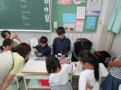 英語でアロマクラフト・卓球・バルーンアート・手芸・外門の絵の5つの教室を開催しました。