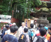 12時45分、東照宮に到着。見学を始めました。雨は大丈夫、降っていません。案内人の説明を受け、東照宮の世界遺産について詳しく知りました。驚きもたくさんあったようです。陽明門前で集合写真を撮りました。