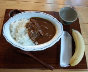11時30分、日光での最後の食事は、カレーライスとバナナです。子どもたちは江戸村で十分楽しんだので、よく食べました。そして、12時15分、東京に向けて出発しました。