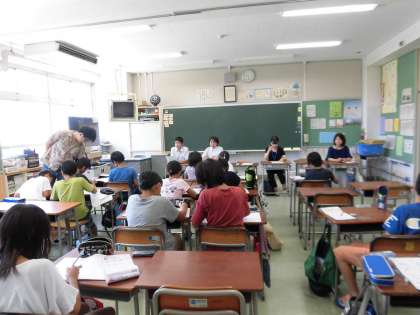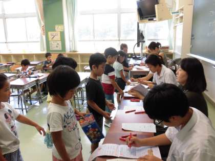 夏休み算数教室1日目を開催しました。今日は、225名の児童が参加しました。各教室で1学期の算数ドリルに取り組み、ボランティアの保護者、白百合女子大学、上祖師谷中学校の皆さんに丸付けをしていただきました。久しぶりの教室での学習でしたが、みんな集中して学習に取り組みました。明日、明後日も続きます!