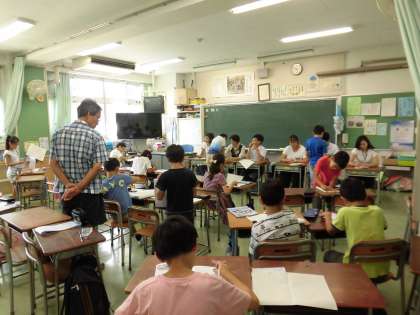 夏休み算数教室2日目です。今日は、226名の児童が参加しました。また、保護者・白百合女子大学・上祖師谷中学校のボランティア48名の方にご協力をいただきました。ありがとうございました。算数ドリルのでの復習は順調に進んでいます。ボランティアの方々の丸付けと温かい励ましにより、子どもたちは張り切って学習に取り組んでいます。明日は最終日です。引き続き、しっかりと学習に取り組みます。