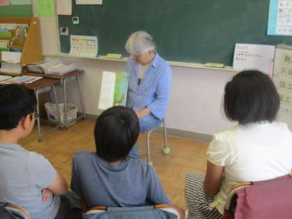本日、5日(水)は、牧先生によるお話会がありました。1組では、「ねこのあかちゃん」「たまごのあかちゃん」などあかちゃんに関係するお話が多く、2組では「ぶたたぬききつねねこ その2」など、動物に関係するお話を読んでいただきました。長い夏休みが終わり、久しぶりのお話会でしたが、子どもたちは牧先生のお話の世界に引き込まれ、よく聞いていました。
