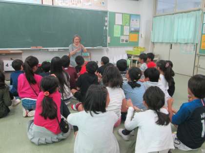 谷川俊太郎さんの詩を一緒に言ってみたり、いろいろな国のお話を話したりしてくださいました。子どもたちは、楽しみながらも静かに話を聞いていました。子どもたちは、本や物語などに、さらに興味をもったことと思います。