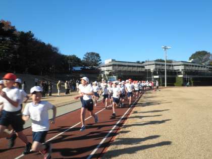 どの子もみんな一生懸命に走っています。走り終わったあとは、最後の言葉を6年女子が言って終わりました。
