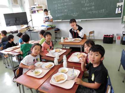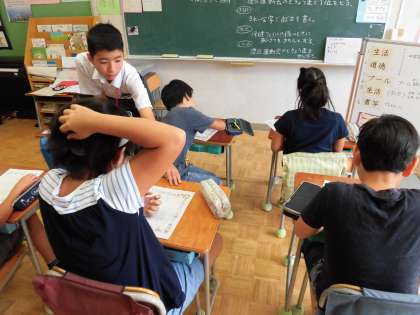 今日は、1年・5年・6年・つくし学級に入り、職場体験を行いました。6年では理科の実験の補助をしたり、つくし学級ではカードの色ぬりのアドバイスをしたりして、積極的に小学生にかかわっていました。だいぶ緊張もほぐれてきたようです。1年生は、優しいお兄さんとお姉さんと一緒に過ごすことができ、嬉しそうでした。明日は、学校主事の仕事を体験する予定です。
