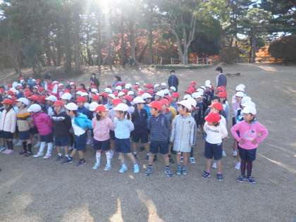 1年生は、400m。2年生は600m走ります。最初にはじめの言葉を言ってから、