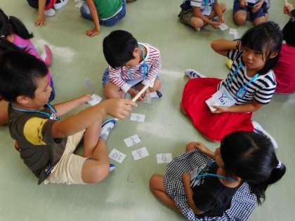 今日は、「Number」の学習でした。1から10までの数を、歌と踊りに合わせて元気よく練習しました。また、グループに分かれて「数字つりぼりゲーム」をしました。1から順番に数えるだけでなく、10から逆に数えることも、グループの仲間と一緒ならできました。