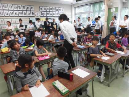 本日は3年1組が理科「こん虫を調べよう」の研究授業に取り組みました。