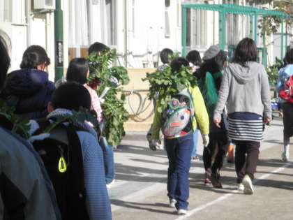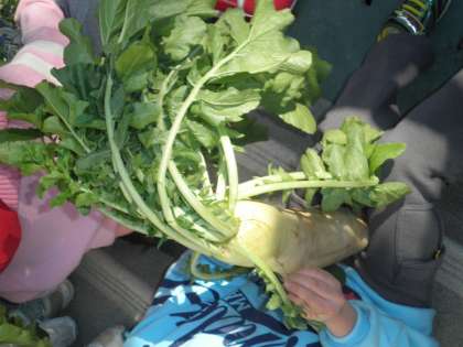 背中に大根をしょってきた子どもがたくさんいます。