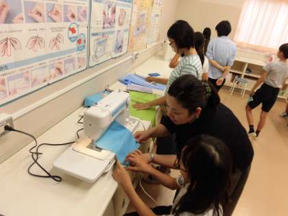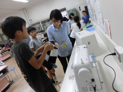 どうしても経験が少なく、技術面、操作面で不安のある子どもたち。ミシン操作に慣れたボランティアの方のアドバイスを受け、安心して制作に取り組むことができました。