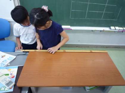 本日は、巻き尺、物差しを使って身の回りのものの長さを測りました。