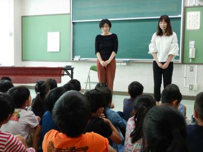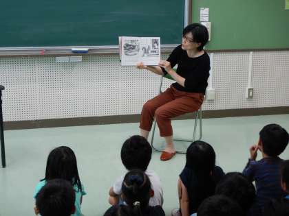 でした。「天のかみさま金んつなください」は、兄弟3人が恐ろしい山姥に捕まらずにどうやって逃げ切ることができるのか、ドキドキハラハラする物語で、子どもたちは真剣な表情でお話を聞き入っていました。